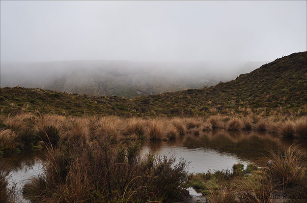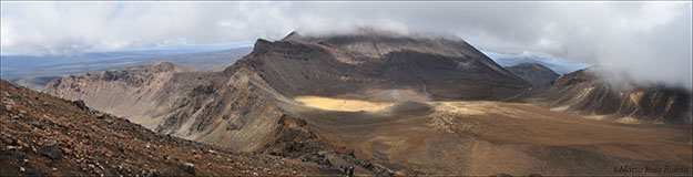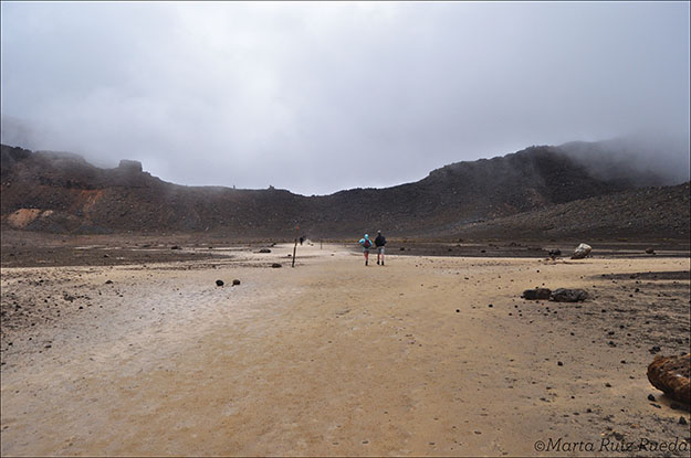 Si se visita el parque está prohibido irse sin hacer el Tongariro Alpine Crossing, clasificado como una de las mejores travesías de Nueva Zelanda, algunos incluso se aventuran a decir del mundo. La verdad que los paisajes que se contemplan a lo largo de los 19.4 km del recorrido son de película. La travesía recorre a lo largo del Monte Tongariro y se tarda entre 7 y 9 horas en hacerla. Parte desde las praderas secas de Mangatepopo salpicadas por paisajes volcánicos en el horizonte, pasa por riachuelos, manantiales y cascadas; la ascensión sigue por el South Crater pasando por paisajes lunares, totalmente inhóspitos, hasta llegar a la cima del Red Crater. En este punto la travesía empieza a descender y recorre el highlight del parque, los lagos esmeralda, lugar que no pude ver debido a las condiciones climatológicas del día que fui. (Es una de mis tantas excusas para volver a Nueva Zelanda). Además de este recorrido, de la travesía parten otras hasta las cumbres del Mt. Ngauruhoe (2287 m), Mt. Doom en el Señor de los Anillos, y el Mt. Tongariro (1967 m). Desde esta ubicación las vistas al Mt. Ruapehu, Mordor en la película de Peter Jackson, son fabulosas.
