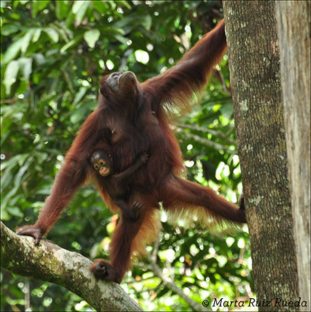 Los orangutanes viven solamente en las islas de Borneo y Sumatra. Son declarados una especie en extinción ya que su hábitat sigue encogiéndose a causa del crecimiento de las plantaciones de aceite de palma. Es un animal considerado como especie paraguas, ya que ellos son responsables de crear un entorno adecuado a otras cientos de especies que forman los bosques biodiversos del sudeste asiático. Por ejemplo, sus balanceos de árbol en árbol ayudan a propagar las semillas de los árboles, de hecho algunos árboles solo pueden germinar cuando sus semillas han pasado por los intestinos de estos primates.