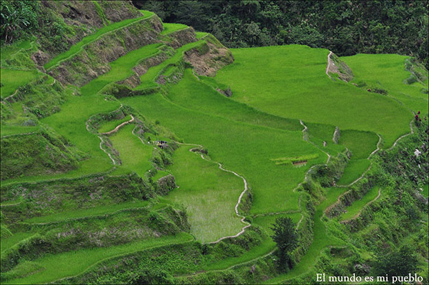 Después del paso por la ciudad de Vigan, en la provincia de Ilocos en la isla de Luzón, mi siguiente parada sería Baguio, un descanso corto, de una noche, solamente para seguir rumbo a Sagada y Banaue. Estos dos pueblos, entre otros, situados en la provincia de Ifugao son conocidos por su entorno, la belleza del paisaje configurado gracias a las terrazas de arroz construidas hace más de 2.000 años. Un paisaje de arrozales perfectamente adaptado a las curvas del relieve gracias al pueblo ifugao. Muchos consideran estas obras agrónomas la octava maravilla del mundo. No es para menos, los pueblos de la Cordillera representan una armonía excepcional del hombre con la naturaleza, paisajes inundados por mares de verde y amarillo, dependiendo de la temporada.