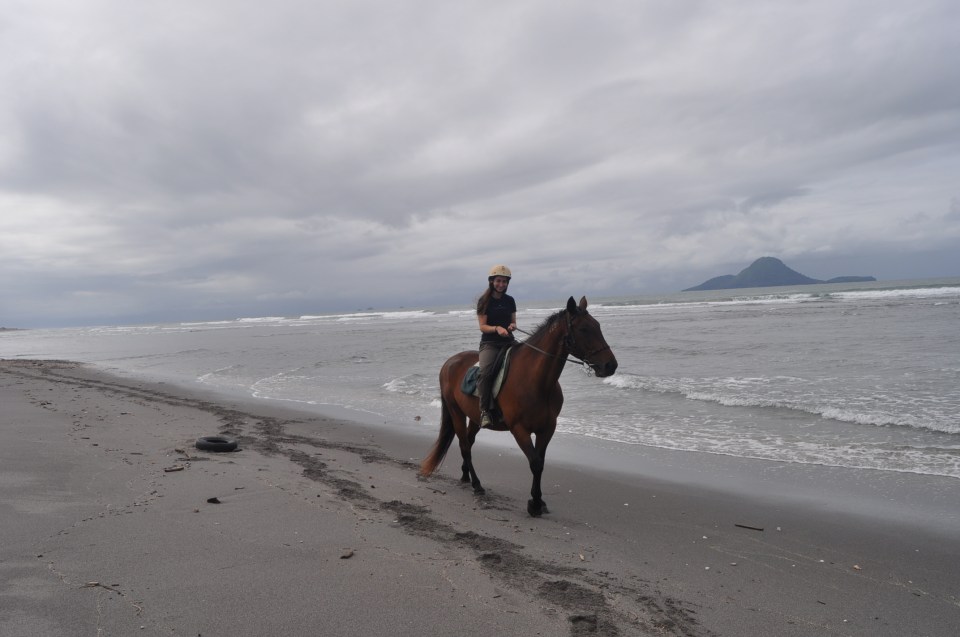 Paisaje desde Whakatane, localidad cercana a Te Kaha, con la White Island al fondo