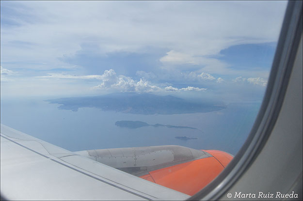 Vuelo  Kuala Lumpur-Manila. Azafatas y pilotos que informan a los pasajeros  con sus charlas de seguridad  en inglés y tagalo. Ya me percato que del tagalo no entiendo el significado pero identifico palabras como aeroplano, pasajero o cinturón. Me pregunto, en un estado de alto optimismo, si en 21 días seré capaz de aprender una nueva lengua. Más tarde comprobaría que efectivamente NO.