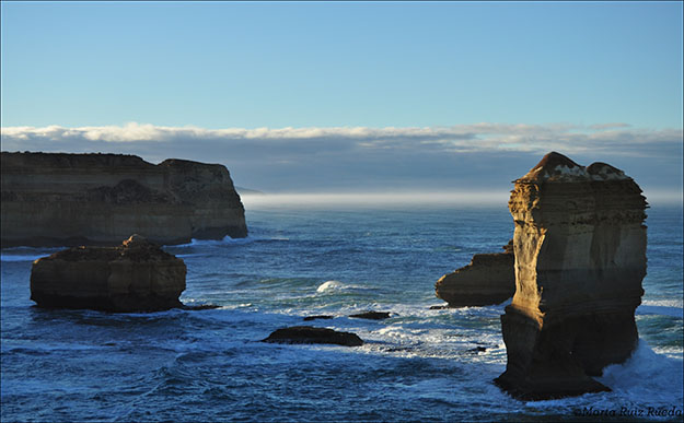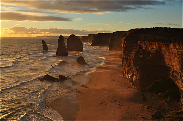 - Los 12 Apóstoles: una compilación de 8 formaciones rocosas repartidas en la costa, entre el océano y los acantilados. La típica foto que toda persona que visita la Great Ocean Road cuelga en su Facebook. Y no es para menos, si se visita durante una puesta de sol, el lugar hechiza a cualquiera, la luz del sol reflejada en cada uno de los peñascos lo convierten en un paisaje imborrable. Nunca fueron 12, pero por razones de marketing bautizaron a los 9 pilares como “Los 12 Apóstoles”, hasta que el 3 de julio de 2005, un pilar de 50 metros se derrumbó dejando solamente ocho en pie.