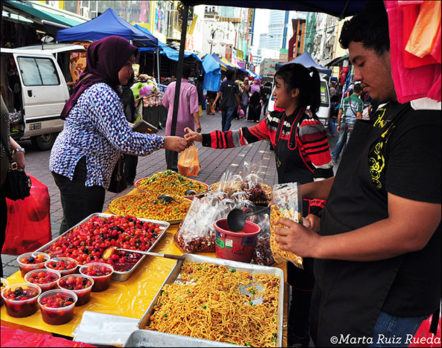 El sudeste asiático, donde no hay aceras en las calles, los puestos de comida callejera surgen a borbotones al caer el sol, las miradas persiguen a los occidentales en las calles poco transitadas por turistas, el olor a incienso surge de cualquier tienda, las fruterías callejeras son una paleta de colores vivos y frescos con formas y sabores únicos… Ese mundo que había conocido años atrás, con bastantes cambios, en India, se abrió de nuevo antes mis ojos, un mundo del que me acabaría acostumbrando pero que de todas maneras nunca me dejaría de sorprender. Aun así, la capital malasia es una ciudad ordenada, grande, con mucho tráfico pero nada tiene que ver con las vecinas capitales del sudeste asiático. Es un buen principio para ir desentramando lo que esconden los demás países colindantes.