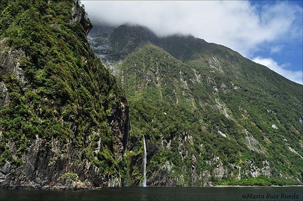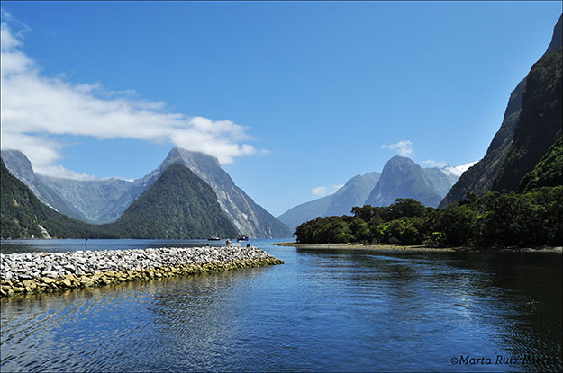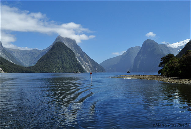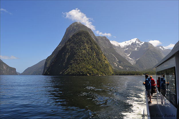 Si los paisajes desde Queenstown ya me habían impresionado las vistas que se gozan hasta Milford Sound son increíbles, y más teniendo en cuenta que tuve la suerte de ir durante un día muy soleado, algo difícil teniendo en cuenta que es una de las regiones más húmedas del mundo, (las precipitaciones pueden alcanzar los 250 mm en un lapso de 24 horas). Durante las más de 2 horas de trayecto, a causa de las intermitentes paradas del autobús en cada uno de los lugares con magníficas vistas, la paz y la tranquilidad fueron las protagonistas de esta película, con algunos turistas y varios animales como extras. Valles, ríos, lagos, glaciares, cumbres nevadas… eran la puerta de entrada a los fiordos, una ruta en crucero nos esperaba en Milford Sound. Un barco zarpó desde el transitado muelle y recorrió los picos que se alzan desde el mar de Tasmania, el icónico monte Peak de 1.692 metros salpicado por una niebla que con el tiempo dejó mostrar su pico es el top 1 del recorrido. Las cascadas repletas de agua, las focas tomando el sol en las diferentes rocas que conforman las bases de los montes y la todopoderosa riqueza del paisaje llegaron a su fin después de una hora y media de trayecto. Pero el viaje no acabó aquí. De vuelta, el autobús volvió a hacer varias paradas tan asombrosas como las de primera hora de la mañana.